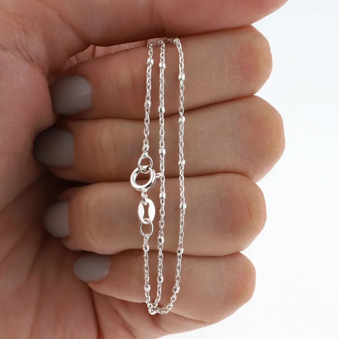 Con su diseño elegante y minimalista, esta cadena de plata se convierte en un accesorio versátil para tu estilo diario. Sus eslabones delgados y ligeros la hacen cómoda de llevar, mientras añade un toque de refinamiento a tu apariencia.